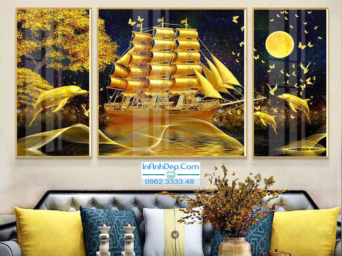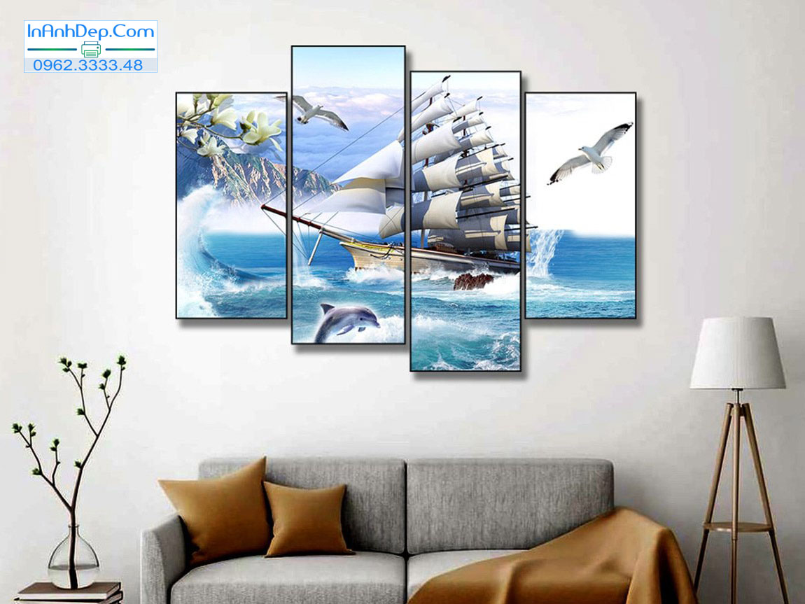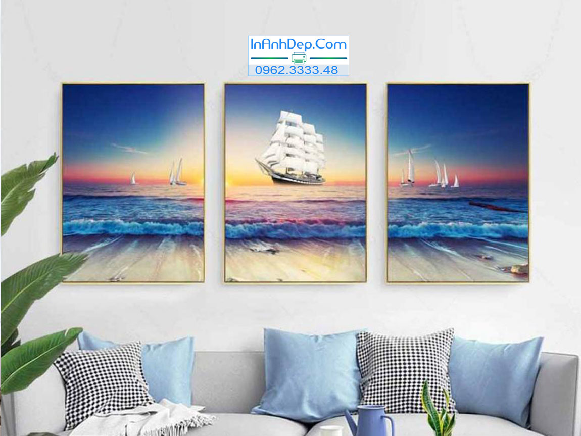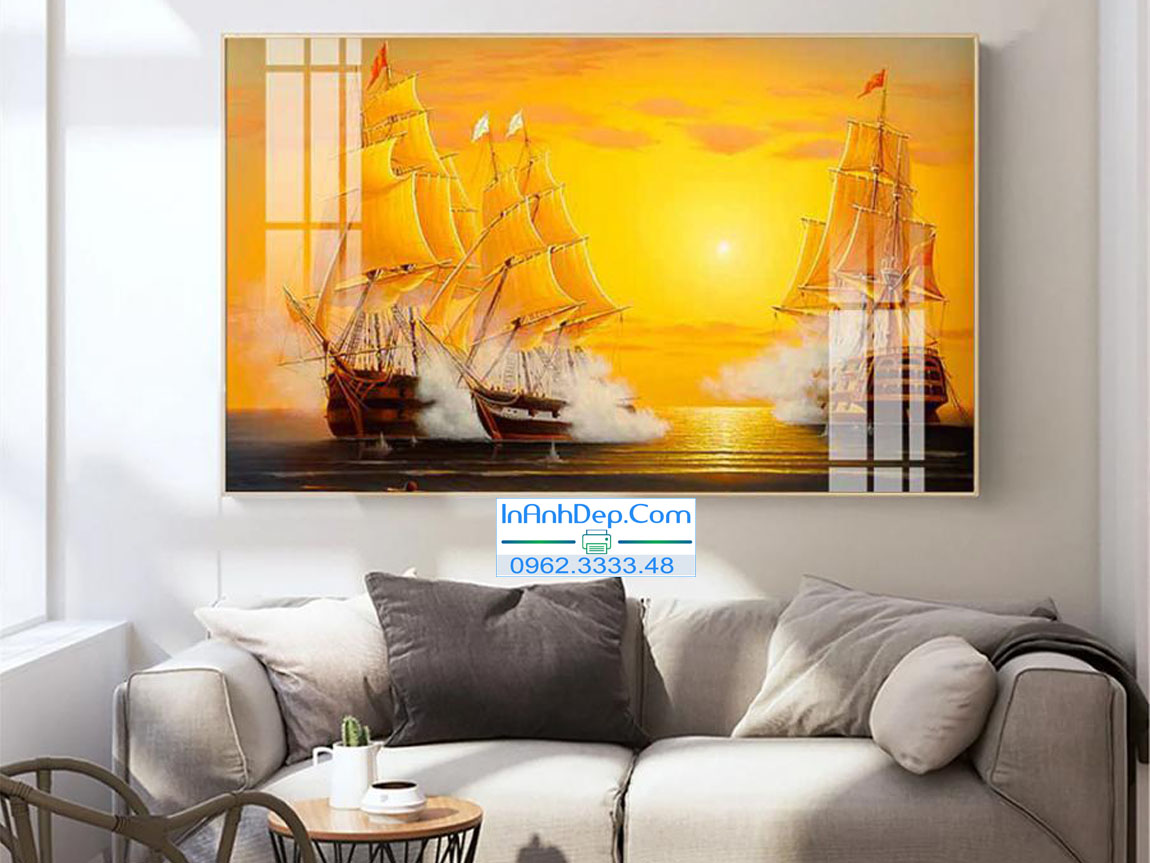 Hình ảnh thuyền no gió lướt trên mặt biển tượng trưng cho sự hanh thông, khát khao chiến thắng, ý chí chinh phục những mục tiêu xa hơn. Đây là vật phẩm phong thủy hợp với người mệnh Thủy, mệnh Mộc, giúp gia chủ thêm sung túc và thịnh vượng. Mời các bạn tham khảo một số mẫu tranh đẹp thuyền và biển.